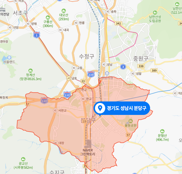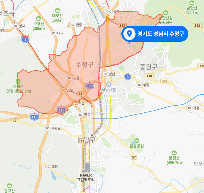 성남시 수정구, 성남시 중원구, 성남시 분당구.