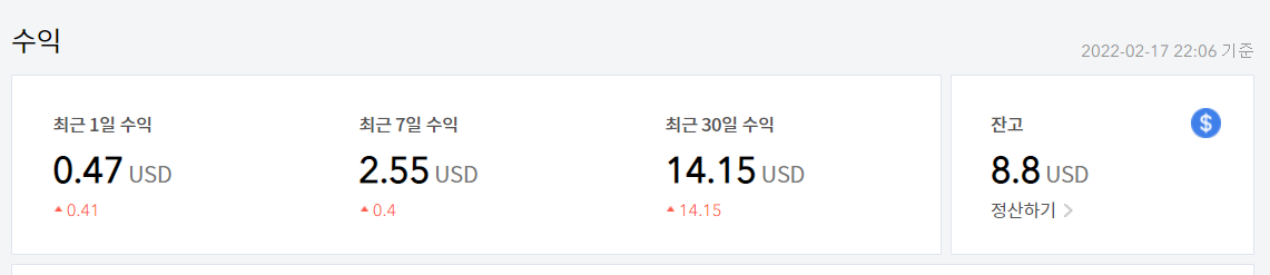 같은 기간동안 카카오 애드핏은 214원이네요..ㅋㅋㅋ