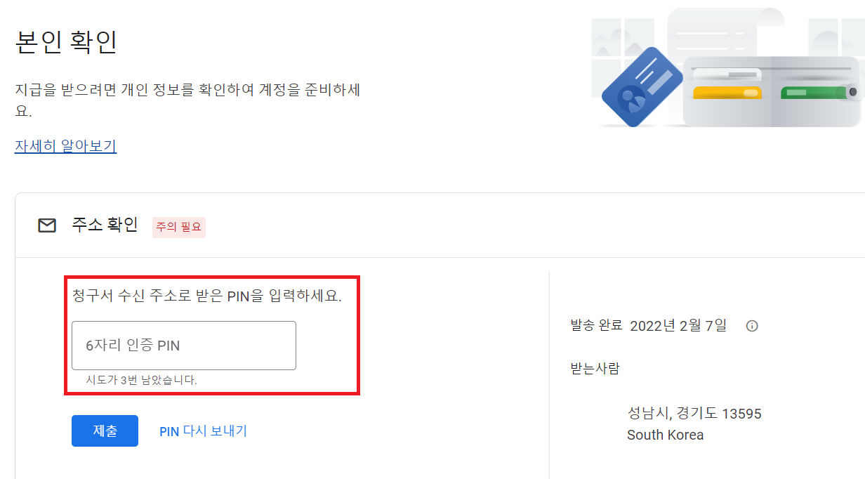 Google 애드센스 PIN 번호 입력하기