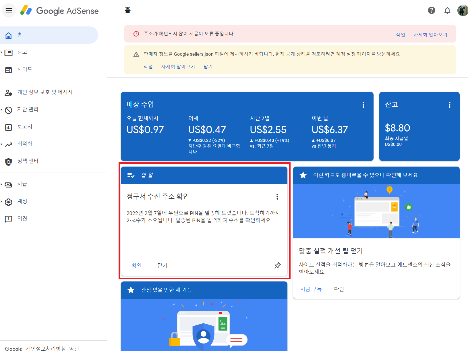 6. 애드센스 도전기 : 핀번호 입력하기 ($한달 수익 공개$)