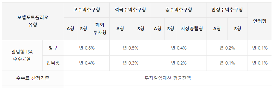 ✔ ISA 종류 (중개형 / 신탁형 / 일임형) 및 수수료