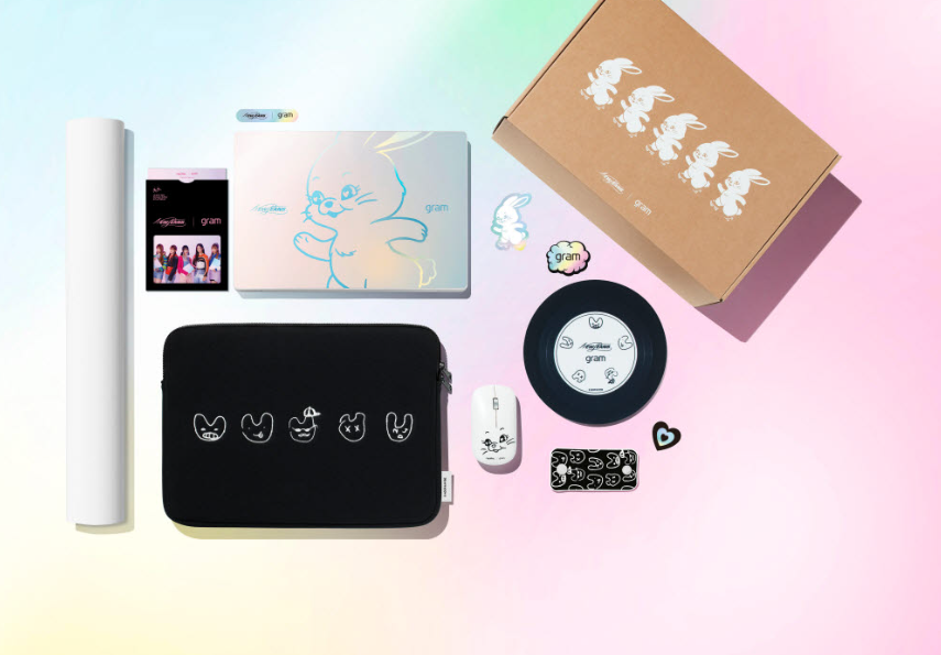뉴진스 리미티드 에디션은 LG그램 본체, 마우스, 파우치 등 구성품에 뉴진스의 상징인