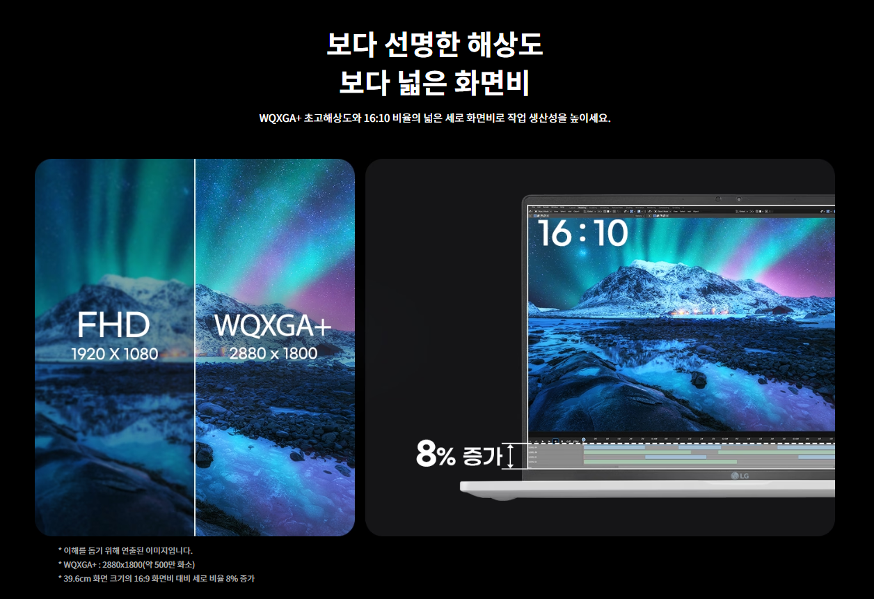 그램 최초 OLED 패널과 WQXGA+ 초고해상도